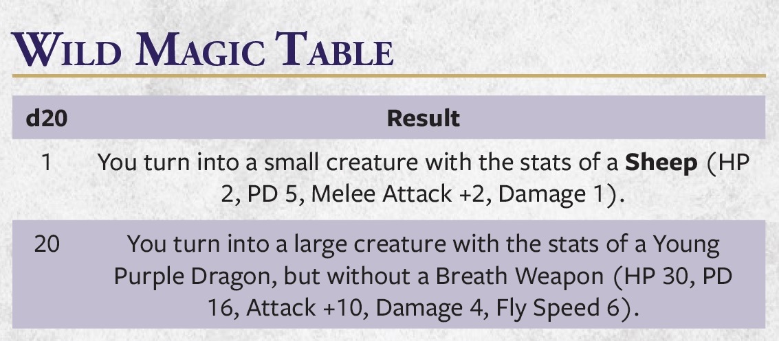 At DC20, Spell Duel is used instead of the usual Counterspell. It is a dynamic Reaction for spellcasters in which the rolls of the spells cast are compared and the stronger spell overcomes the weaker one. However, if the rolls are equal, a Wild Magic Surge occurs and both casters then roll for a random effect from the Wild Magic Table. Spellcasters can also achieve greater magical effects by Combo Spellcasting for two or more spellcasters. In addition, each spell can be modified as needed with Spell Enhancement.